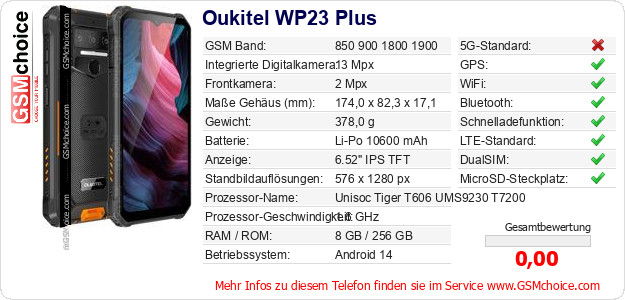 Daten des Mobiltelefons Oukitel WP23 Plus auf Ihrer Seite