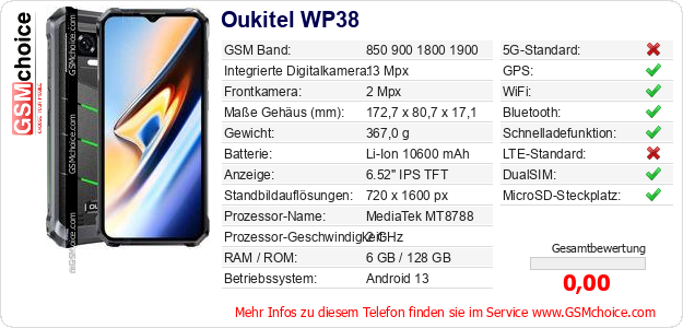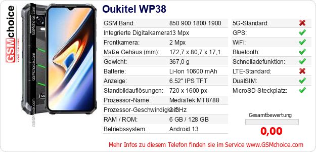 Daten des Mobiltelefons Oukitel WP38 auf Ihrer Seite