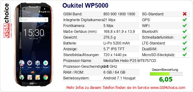 Hast du eigene Webseite? Willst du die Informationen über Standarddaten des Handys Oukitel WP5000 irgendwo veröffentlichen? Das ist sehr einfach. Du kannst das Bild herunterladen oder kopieren und auf der Webseite folgenden Code hinzufügen:Das Einfügen von diesem Code verursacht das Anzeigen von dem folgenden Bild: