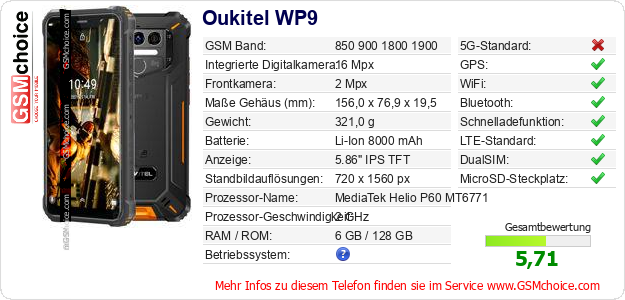 Hast du eigene Webseite? Willst du die Informationen über Standarddaten des Handys Oukitel WP9 irgendwo veröffentlichen? Das ist sehr einfach. Du kannst das Bild herunterladen oder kopieren und auf der Webseite folgenden Code hinzufügen:Das Einfügen von diesem Code verursacht das Anzeigen von dem folgenden Bild: