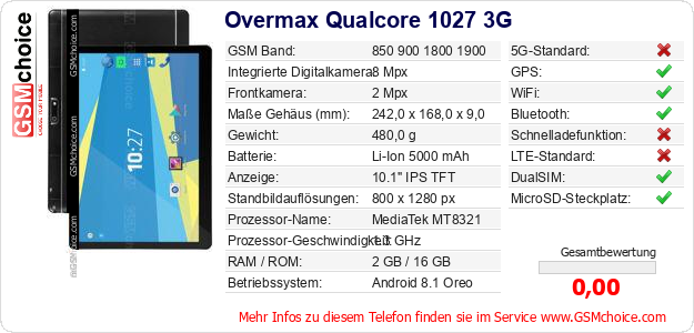 Daten des Mobiltelefons Overmax Qualcore 1027 3G auf Ihrer Seite