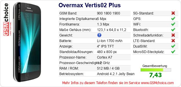 Daten des Mobiltelefons Overmax Vertis02 Plus auf Ihrer Seite