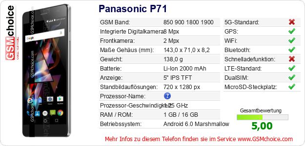 Hast du eigene Webseite? Willst du die Informationen über Standarddaten des Handys Panasonic P71 irgendwo veröffentlichen? Das ist sehr einfach. Du kannst das Bild herunterladen oder kopieren und auf der Webseite folgenden Code hinzufügen:Das Einfügen von diesem Code verursacht das Anzeigen von dem folgenden Bild: