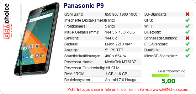 Hast du eigene Webseite? Willst du die Informationen über Standarddaten des Handys Panasonic P9 irgendwo veröffentlichen? Das ist sehr einfach. Du kannst das Bild herunterladen oder kopieren und auf der Webseite folgenden Code hinzufügen:Das Einfügen von diesem Code verursacht das Anzeigen von dem folgenden Bild: