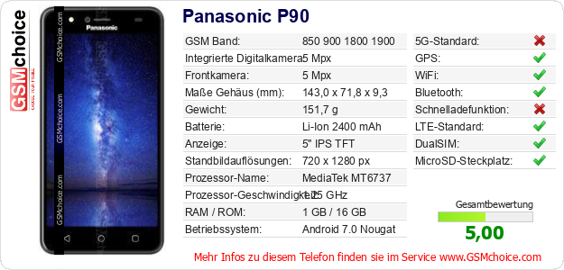 Hast du eigene Webseite? Willst du die Informationen über Standarddaten des Handys Panasonic P90 irgendwo veröffentlichen? Das ist sehr einfach. Du kannst das Bild herunterladen oder kopieren und auf der Webseite folgenden Code hinzufügen:Das Einfügen von diesem Code verursacht das Anzeigen von dem folgenden Bild: