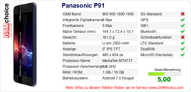 Hast du eigene Webseite? Willst du die Informationen über Standarddaten des Handys Panasonic P91 irgendwo veröffentlichen? Das ist sehr einfach. Du kannst das Bild herunterladen oder kopieren und auf der Webseite folgenden Code hinzufügen:Das Einfügen von diesem Code verursacht das Anzeigen von dem folgenden Bild: