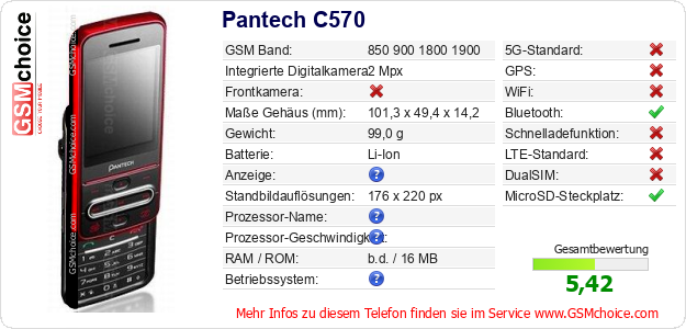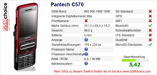 Hast du eigene Webseite? Willst du die Informationen über Standarddaten des Handys Pantech C570 irgendwo veröffentlichen? Das ist sehr einfach. Du kannst das Bild herunterladen oder kopieren und auf der Webseite folgenden Code hinzufügen:Das Einfügen von diesem Code verursacht das Anzeigen von dem folgenden Bild: