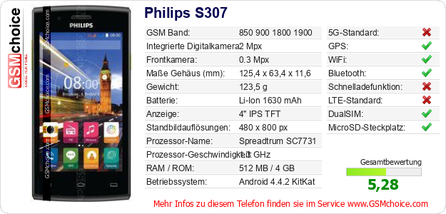 Hast du eigene Webseite? Willst du die Informationen über Standarddaten des Handys Philips S307 irgendwo veröffentlichen? Das ist sehr einfach. Du kannst das Bild herunterladen oder kopieren und auf der Webseite folgenden Code hinzufügen:Das Einfügen von diesem Code verursacht das Anzeigen von dem folgenden Bild: