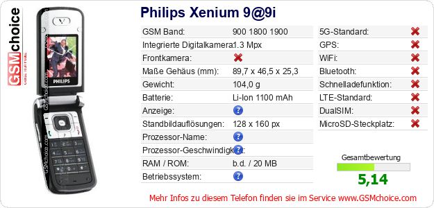 Hast du eigene Webseite? Willst du die Informationen über Standarddaten des Handys Philips Xenium 9@9i irgendwo veröffentlichen? Das ist sehr einfach. Du kannst das Bild herunterladen oder kopieren und auf der Webseite folgenden Code hinzufügen:Das Einfügen von diesem Code verursacht das Anzeigen von dem folgenden Bild: