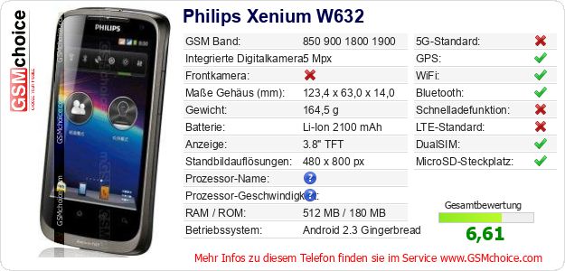 Hast du eigene Webseite? Willst du die Informationen über Standarddaten des Handys Philips Xenium W632 irgendwo veröffentlichen? Das ist sehr einfach. Du kannst das Bild herunterladen oder kopieren und auf der Webseite folgenden Code hinzufügen:Das Einfügen von diesem Code verursacht das Anzeigen von dem folgenden Bild: