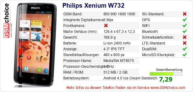 Hast du eigene Webseite? Willst du die Informationen über Standarddaten des Handys Philips Xenium W732 irgendwo veröffentlichen? Das ist sehr einfach. Du kannst das Bild herunterladen oder kopieren und auf der Webseite folgenden Code hinzufügen:Das Einfügen von diesem Code verursacht das Anzeigen von dem folgenden Bild: