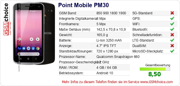 Daten des Mobiltelefons Point Mobile PM30 auf Ihrer Seite
