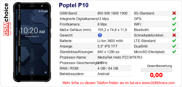 Daten des Mobiltelefons Poptel P10 auf Ihrer Seite