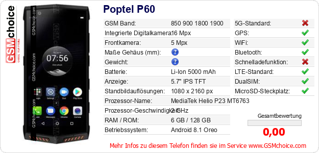 Hast du eigene Webseite? Willst du die Informationen über Standarddaten des Handys Poptel P60 irgendwo veröffentlichen? Das ist sehr einfach. Du kannst das Bild herunterladen oder kopieren und auf der Webseite folgenden Code hinzufügen:Das Einfügen von diesem Code verursacht das Anzeigen von dem folgenden Bild:
