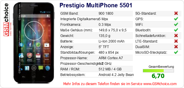Hast du eigene Webseite? Willst du die Informationen über Standarddaten des Handys Prestigio MultiPhone 5501 irgendwo veröffentlichen? Das ist sehr einfach. Du kannst das Bild herunterladen oder kopieren und auf der Webseite folgenden Code hinzufügen:Das Einfügen von diesem Code verursacht das Anzeigen von dem folgenden Bild: