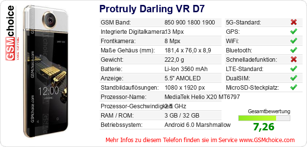 Daten des Mobiltelefons Protruly Darling VR D7 auf Ihrer Seite