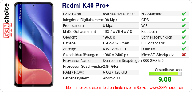 Hast du eigene Webseite? Willst du die Informationen über Standarddaten des Handys Redmi K40 Pro+ irgendwo veröffentlichen? Das ist sehr einfach. Du kannst das Bild herunterladen oder kopieren und auf der Webseite folgenden Code hinzufügen:Das Einfügen von diesem Code verursacht das Anzeigen von dem folgenden Bild: