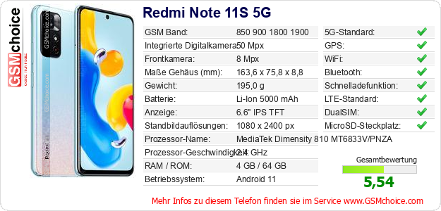 Hast du eigene Webseite? Willst du die Informationen über Standarddaten des Handys Redmi Note 11S 5G irgendwo veröffentlichen? Das ist sehr einfach. Du kannst das Bild herunterladen oder kopieren und auf der Webseite folgenden Code hinzufügen:Das Einfügen von diesem Code verursacht das Anzeigen von dem folgenden Bild:
