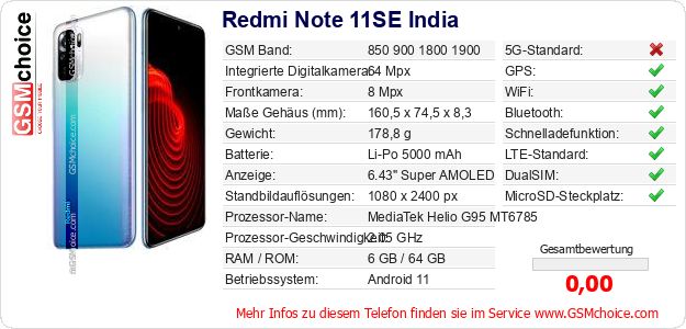 Daten des Mobiltelefons Redmi Note 11SE India auf Ihrer Seite