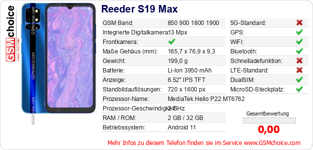 Daten des Mobiltelefons Reeder S19 Max auf Ihrer Seite