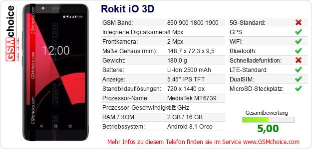 Hast du eigene Webseite? Willst du die Informationen über Standarddaten des Handys Rokit iO 3D irgendwo veröffentlichen? Das ist sehr einfach. Du kannst das Bild herunterladen oder kopieren und auf der Webseite folgenden Code hinzufügen:Das Einfügen von diesem Code verursacht das Anzeigen von dem folgenden Bild: