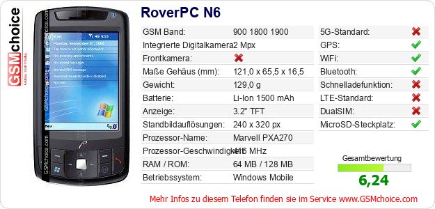 Daten des Mobiltelefons RoverPC N6 auf Ihrer Seite