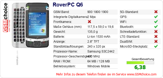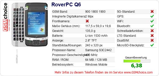 Daten des Mobiltelefons RoverPC Q6 auf Ihrer Seite