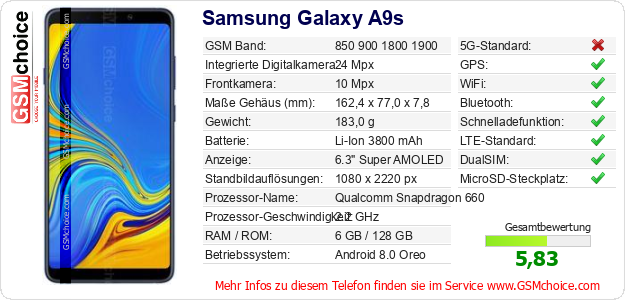 Daten des Mobiltelefons Samsung Galaxy A9s auf Ihrer Seite