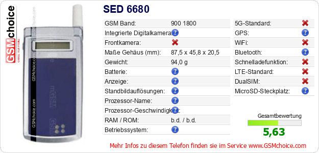 Hast du eigene Webseite? Willst du die Informationen über Standarddaten des Handys SED 6680 irgendwo veröffentlichen? Das ist sehr einfach. Du kannst das Bild herunterladen oder kopieren und auf der Webseite folgenden Code hinzufügen:Das Einfügen von diesem Code verursacht das Anzeigen von dem folgenden Bild: