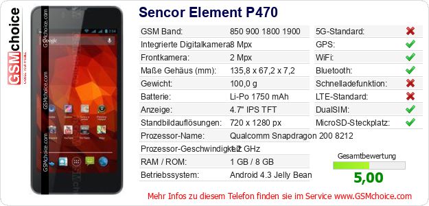 Daten des Mobiltelefons Sencor Element P470 auf Ihrer Seite