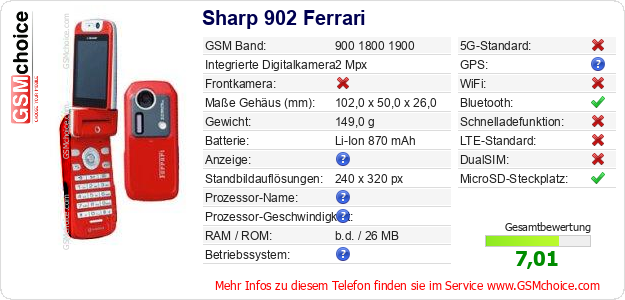 Daten des Mobiltelefons Sharp 902 Ferrari auf Ihrer Seite