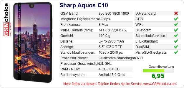 Hast du eigene Webseite? Willst du die Informationen über Standarddaten des Handys Sharp Aquos C10 irgendwo veröffentlichen? Das ist sehr einfach. Du kannst das Bild herunterladen oder kopieren und auf der Webseite folgenden Code hinzufügen:Das Einfügen von diesem Code verursacht das Anzeigen von dem folgenden Bild: