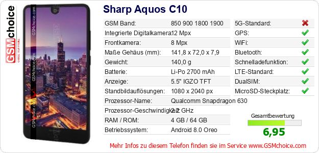 Daten des Mobiltelefons Sharp Aquos C10 auf Ihrer Seite