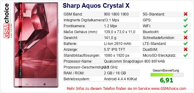Daten des Mobiltelefons Sharp Aquos Crystal X auf Ihrer Seite