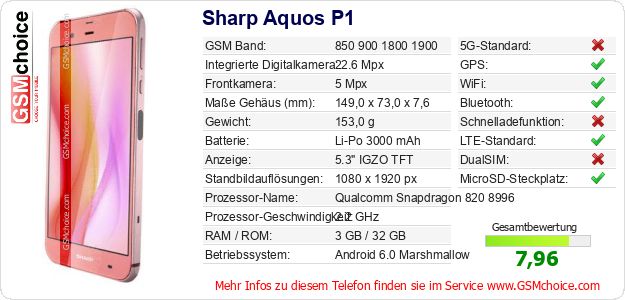 Hast du eigene Webseite? Willst du die Informationen über Standarddaten des Handys Sharp Aquos P1 irgendwo veröffentlichen? Das ist sehr einfach. Du kannst das Bild herunterladen oder kopieren und auf der Webseite folgenden Code hinzufügen:Das Einfügen von diesem Code verursacht das Anzeigen von dem folgenden Bild:
