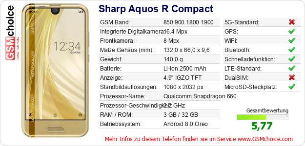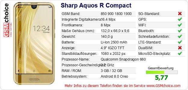 Daten des Mobiltelefons Sharp Aquos R Compact auf Ihrer Seite