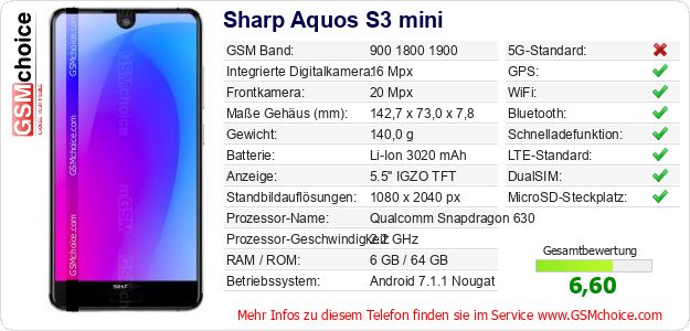 Hast du eigene Webseite? Willst du die Informationen über Standarddaten des Handys Sharp Aquos S3 mini irgendwo veröffentlichen? Das ist sehr einfach. Du kannst das Bild herunterladen oder kopieren und auf der Webseite folgenden Code hinzufügen:Das Einfügen von diesem Code verursacht das Anzeigen von dem folgenden Bild: