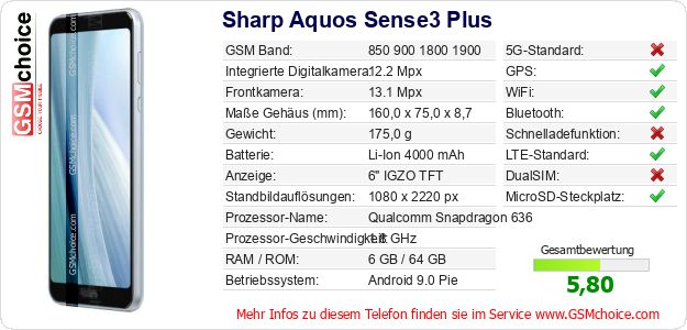 Daten des Mobiltelefons Sharp Aquos Sense3 Plus auf Ihrer Seite