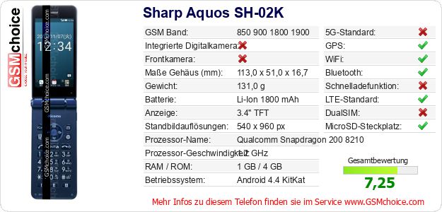 Hast du eigene Webseite? Willst du die Informationen über Standarddaten des Handys Sharp Aquos SH-02K irgendwo veröffentlichen? Das ist sehr einfach. Du kannst das Bild herunterladen oder kopieren und auf der Webseite folgenden Code hinzufügen:Das Einfügen von diesem Code verursacht das Anzeigen von dem folgenden Bild: