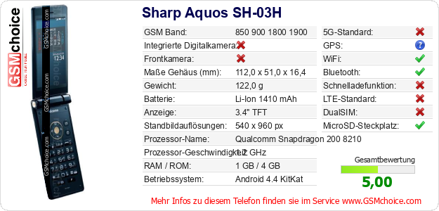 Hast du eigene Webseite? Willst du die Informationen über Standarddaten des Handys Sharp Aquos SH-03H irgendwo veröffentlichen? Das ist sehr einfach. Du kannst das Bild herunterladen oder kopieren und auf der Webseite folgenden Code hinzufügen:Das Einfügen von diesem Code verursacht das Anzeigen von dem folgenden Bild: