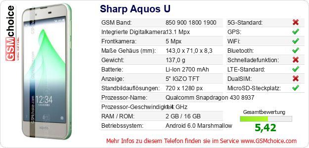 Hast du eigene Webseite? Willst du die Informationen über Standarddaten des Handys Sharp Aquos U irgendwo veröffentlichen? Das ist sehr einfach. Du kannst das Bild herunterladen oder kopieren und auf der Webseite folgenden Code hinzufügen:Das Einfügen von diesem Code verursacht das Anzeigen von dem folgenden Bild: