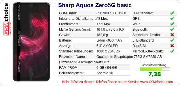 Daten des Mobiltelefons Sharp Aquos Zero5G basic auf Ihrer Seite