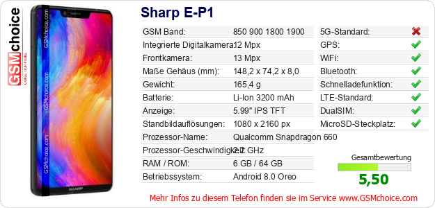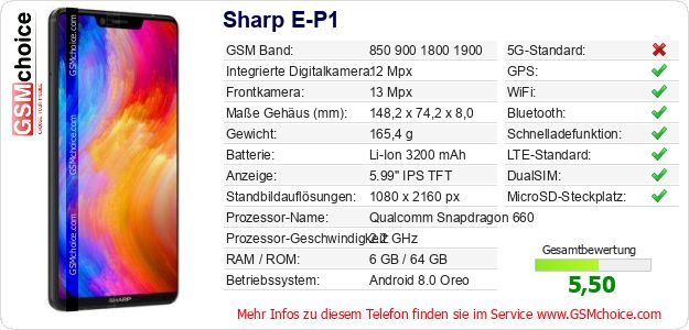Hast du eigene Webseite? Willst du die Informationen über Standarddaten des Handys Sharp E-P1 irgendwo veröffentlichen? Das ist sehr einfach. Du kannst das Bild herunterladen oder kopieren und auf der Webseite folgenden Code hinzufügen:Das Einfügen von diesem Code verursacht das Anzeigen von dem folgenden Bild: