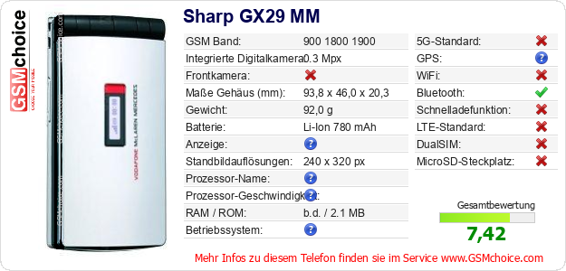 Daten des Mobiltelefons Sharp GX29 MM auf Ihrer Seite