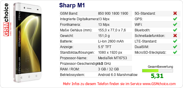Hast du eigene Webseite? Willst du die Informationen über Standarddaten des Handys Sharp M1 irgendwo veröffentlichen? Das ist sehr einfach. Du kannst das Bild herunterladen oder kopieren und auf der Webseite folgenden Code hinzufügen:Das Einfügen von diesem Code verursacht das Anzeigen von dem folgenden Bild: