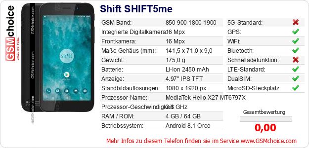 Hast du eigene Webseite? Willst du die Informationen über Standarddaten des Handys Shift SHIFT5me irgendwo veröffentlichen? Das ist sehr einfach. Du kannst das Bild herunterladen oder kopieren und auf der Webseite folgenden Code hinzufügen:Das Einfügen von diesem Code verursacht das Anzeigen von dem folgenden Bild: