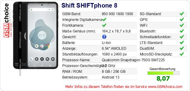 Daten des Mobiltelefons Shift SHIFTphone 8 auf Ihrer Seite