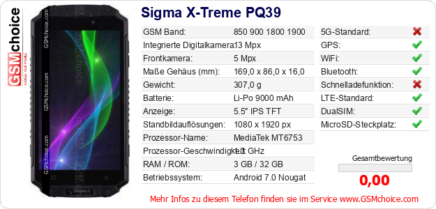 Daten des Mobiltelefons Sigma X-Treme PQ39 auf Ihrer Seite