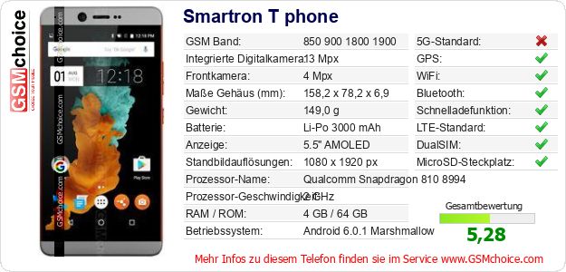 Daten des Mobiltelefons Smartron T phone auf Ihrer Seite