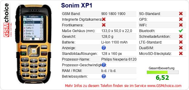 Hast du eigene Webseite? Willst du die Informationen über Standarddaten des Handys Sonim XP1 irgendwo veröffentlichen? Das ist sehr einfach. Du kannst das Bild herunterladen oder kopieren und auf der Webseite folgenden Code hinzufügen:Das Einfügen von diesem Code verursacht das Anzeigen von dem folgenden Bild: